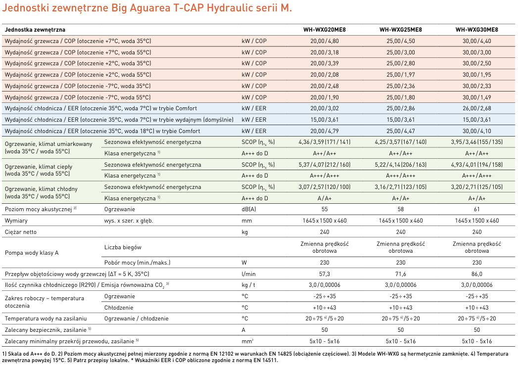 Jednostki zewnętrzne Aguarea T-CAP Hydraulic serii M: Jednofazowe / trójfazowe R290