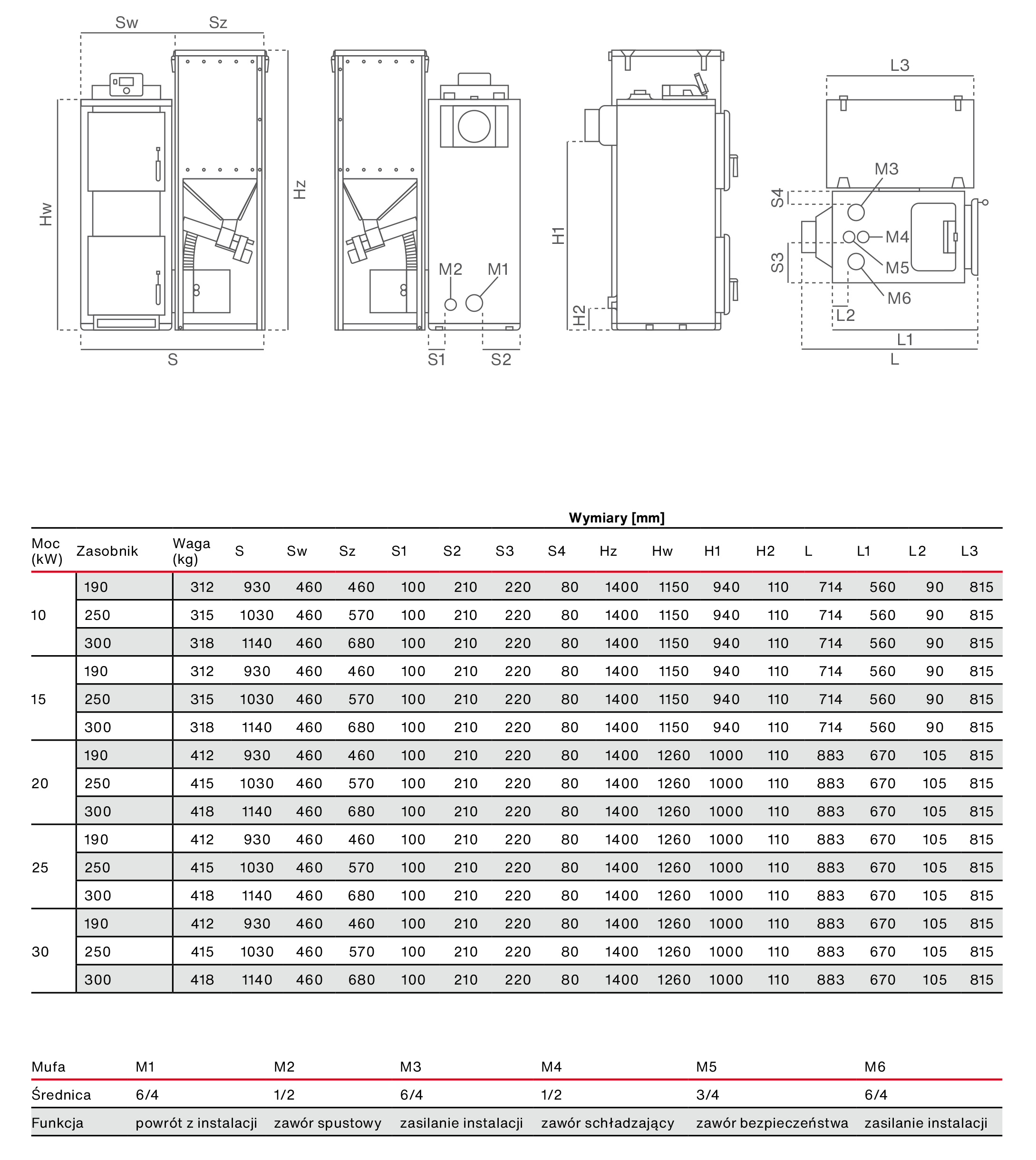 Kocioł Firemax 190/250/300 jest dostępny w zakresie mocy: