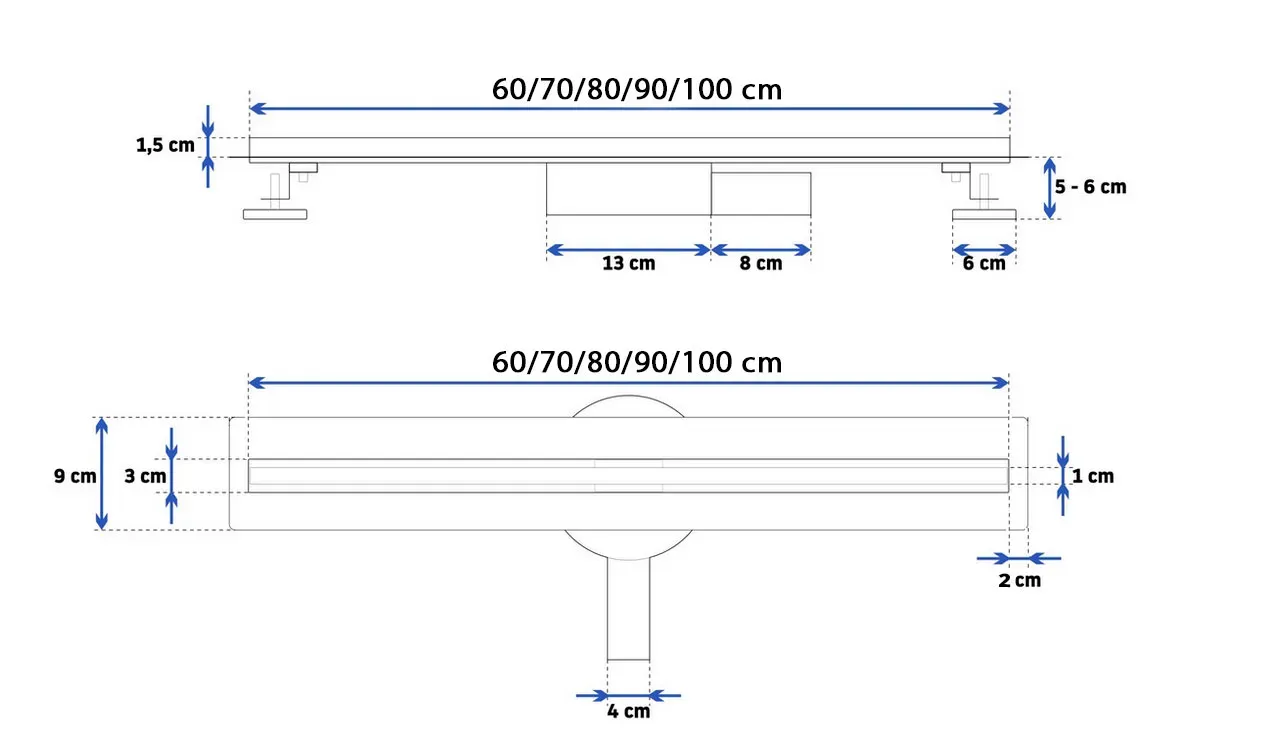 Odpływ wykonany został w całości ze stali nierdzewnej kwasoodpornej typu Aisi 304. Wyposażony został w szereg innowacyjnych technologii ułatwiających montaż oraz codzienne użytkowanie. W odpływie został zastosowany podwójny system filtracji, który doskonale zapobiega przedostawaniu się zanieczyszczeń i przedmiotów mogących zatkać odprowadzanie wody z odpływu do kanalizacji. Zaletą tego systemu jest łatwość czyszczenia. W komplecie: nóżki, syfon, mankiet Dry-Fix, koszyk, instrukcja obsługi oraz hak do zmiany maskownicy.