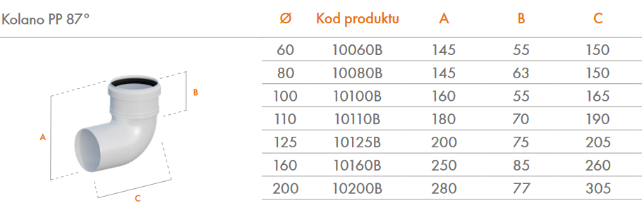 RICOM PP KOLANO 87° FI 80 BIAŁE 10080B
