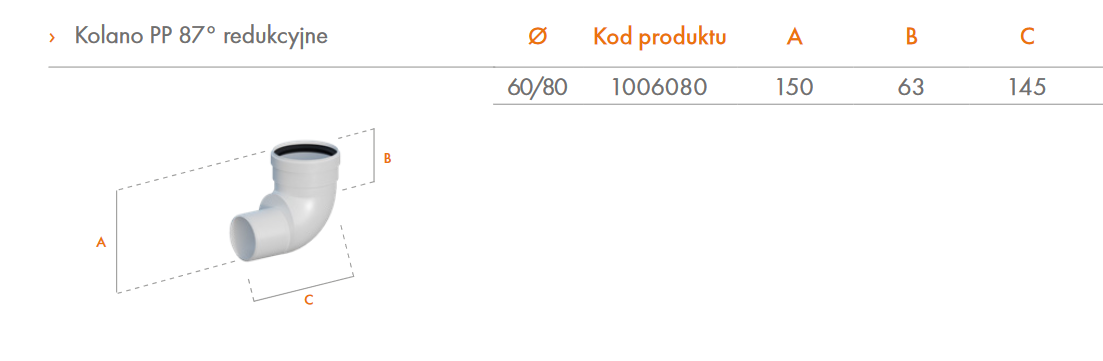 RICOM PP KOLANO REDUKCYJNE 87° FI 60/80 1006080