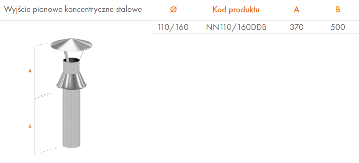 RICOM STAL WYJŚCIE PIONOWE KONCENTRYCZNE FI 110/160 NN110/160DDB