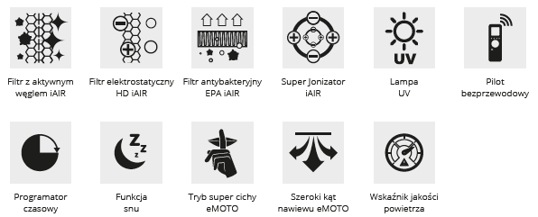 | Wydajność w oczyszczaniu powietrza z pyłu, kurzu i dymu - CADR (m3/h) | 220 |