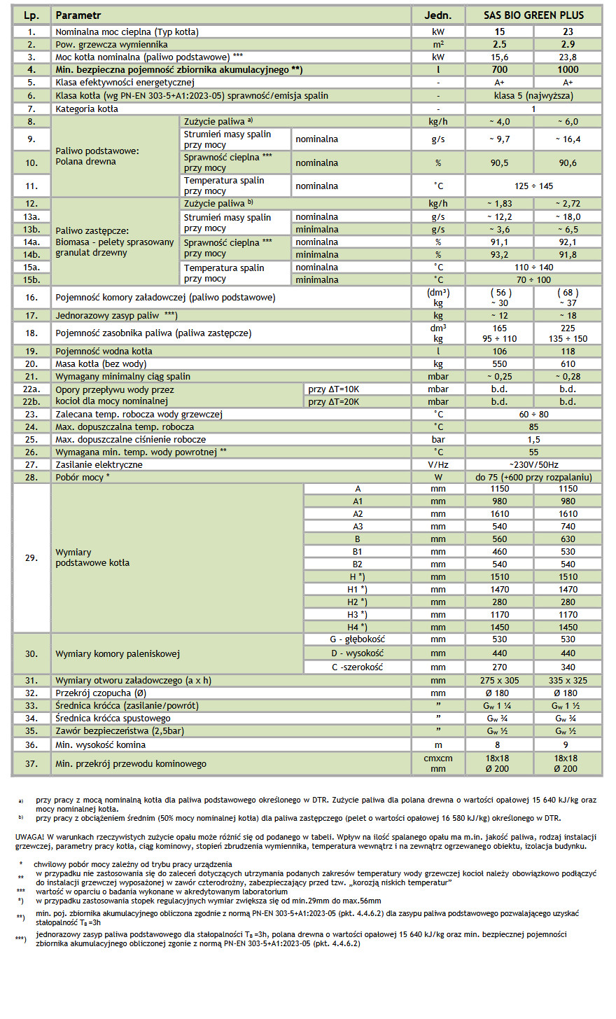 - EcoDesign, Klasa 5 (najwyższa) wg PN-EN 303-5 + A1:2023-05, Klasa efektywności energetycznej A+