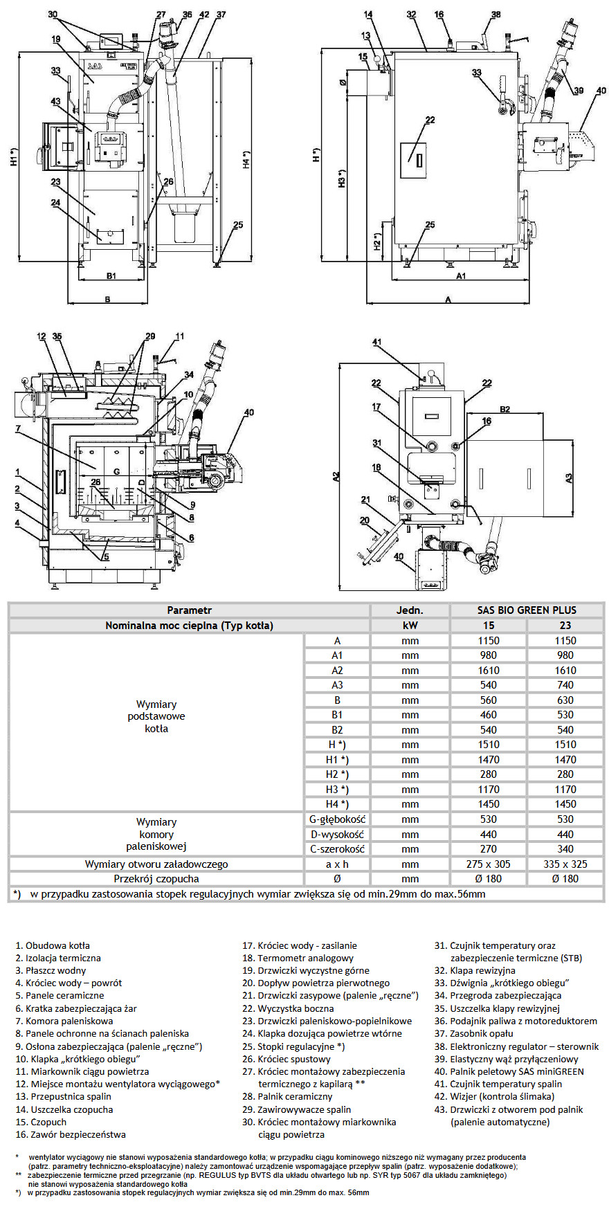 - emisja pyłów <=20mg/m3 (urządzenie spełnia najbardziej rygorystyczne wymagania dotyczące niskiej emisji szkodliwych substancji, zwłaszcza pyłów)