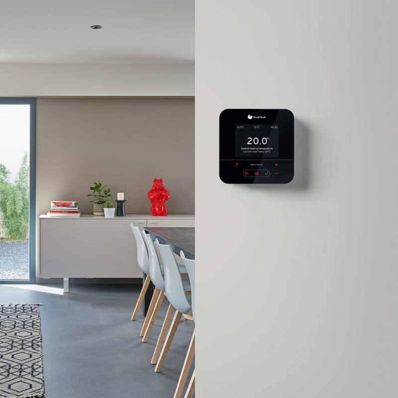 - Współpracuje z kotłami wyposażonymi w złącze eBUS