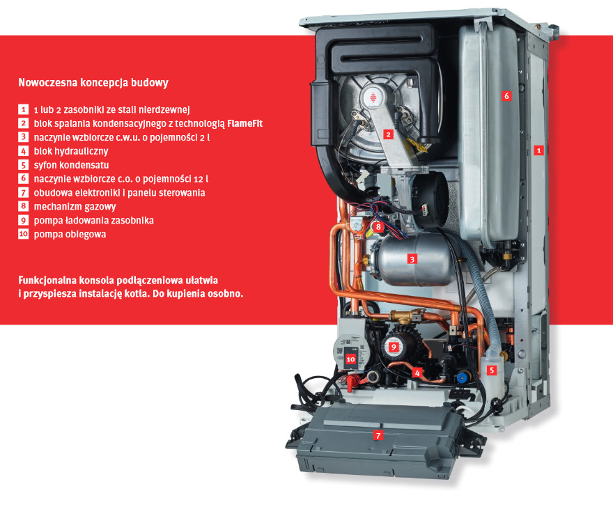Do montażu kotła wymagana jest konsola podłączeniowa sprzedawana osobno