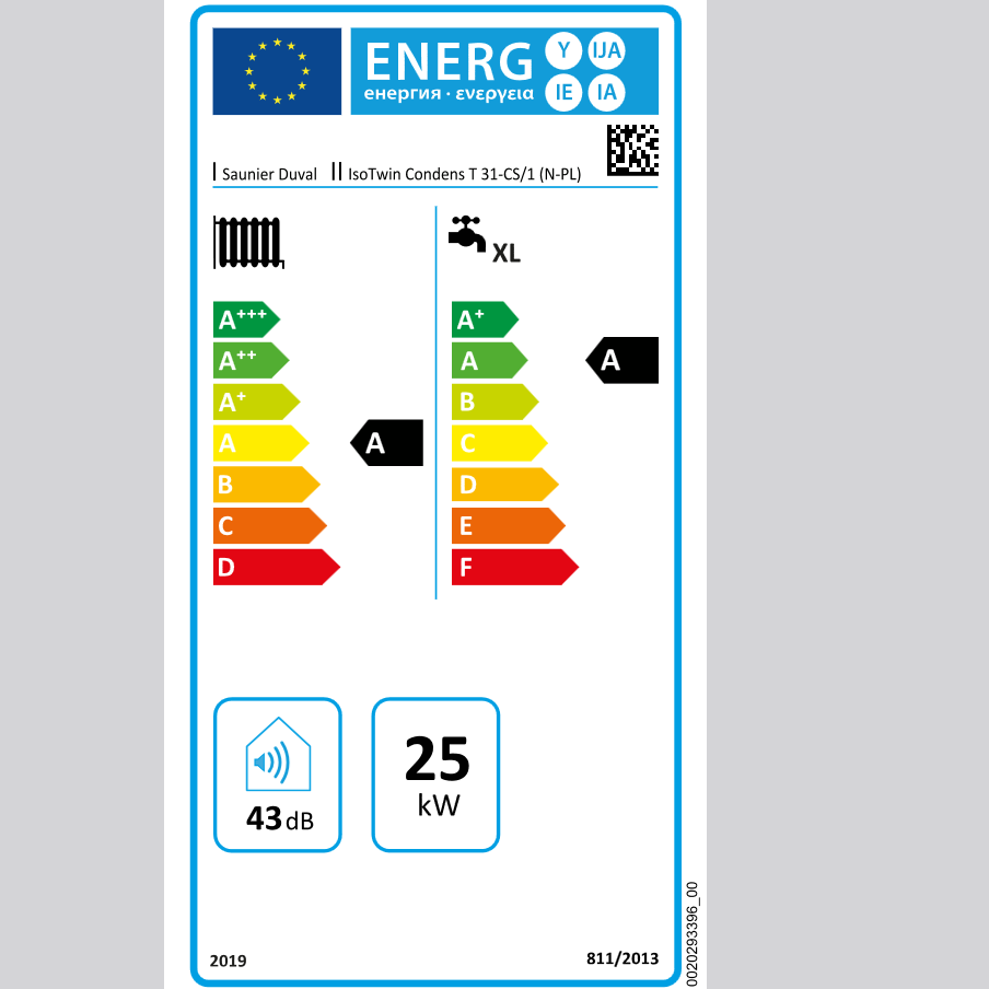| Klasa efektywności energetycznej dla c.o. | A |