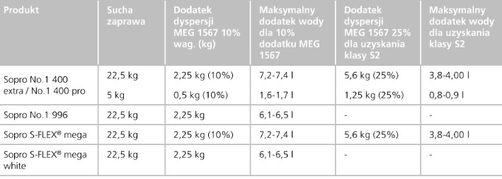 - Do ulepszania Sopro No.1 extra i Sopro No.1 pro w celu uzyskania klasy odkształcalności S2 wg normy EN 12004