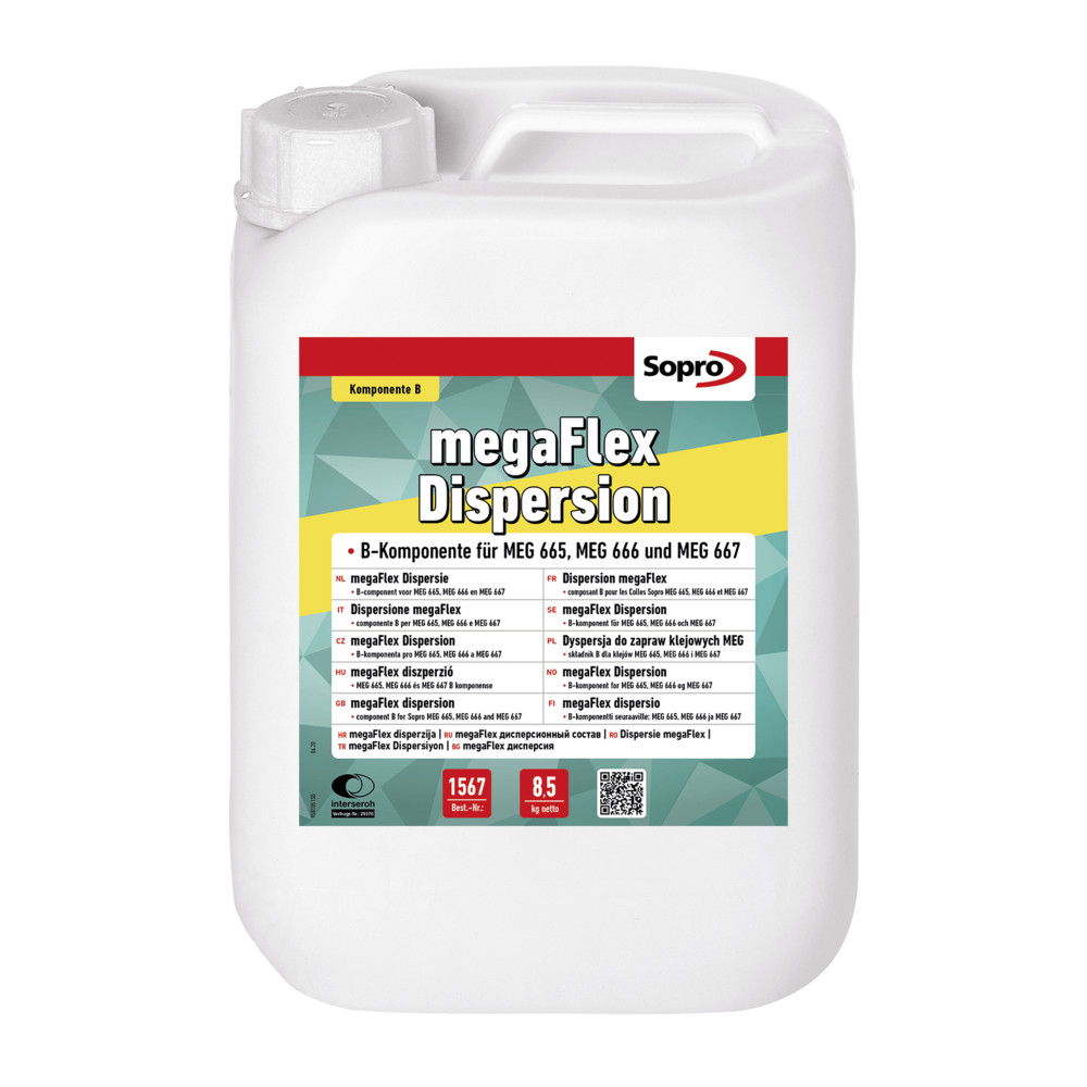 Dyspersja uelastyczniająca do przygotowywania zaprawy klejowej S2 w systemie zapraw megaFlex jako składnik B do MEG 667 Silver. Może być również stosowana jako dodatek do innych cienkowarstwowych zapraw Sopro w celu zwiększenia przyczepności, odkształcalności poprzecznej i elastyczności.
