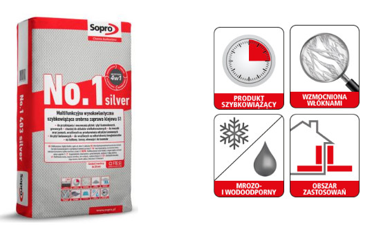 SOPRO NO.1 403 SILVER - MULTIFUNKCYJNA SREBRNA SZYBKOWIĄŻĄCA ZAPRAWA KLEJOWA S1 22,5 KG