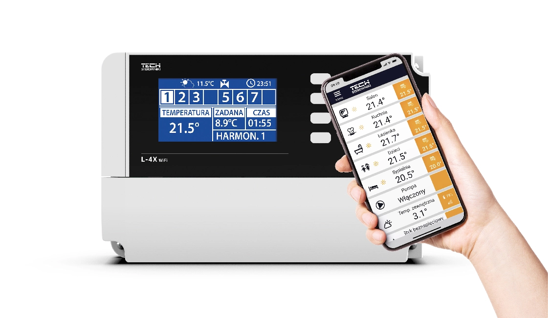- Możliwość kontrolowania pracy systemu ogrzewania podłogowego, jak i grzejnikowego