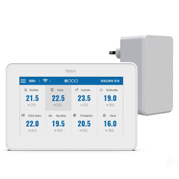 Panel M-9 T jest urządzeniem nadrzędnym. Pozwala wygodnie kontrolować i edytować parametry pracy ogrzewania maksymalnie aż w 32 strefach. Z pomocą panelu kontrolnego sterowników ogrzewania można wygodnie definiować harmonogramy pracy, a także osobno ustalać wartość temperatury zadanej. Dodatkowo z poziomu panelu można włączać i wyłączać poszczególne strefy. Na wyświetlaczu panelu można również skorzystać z opcji dodatkowych jak ustawienie daty oraz godziny, wygaszacza ekranu, budzika, zaprogramować blokadę ekranu.