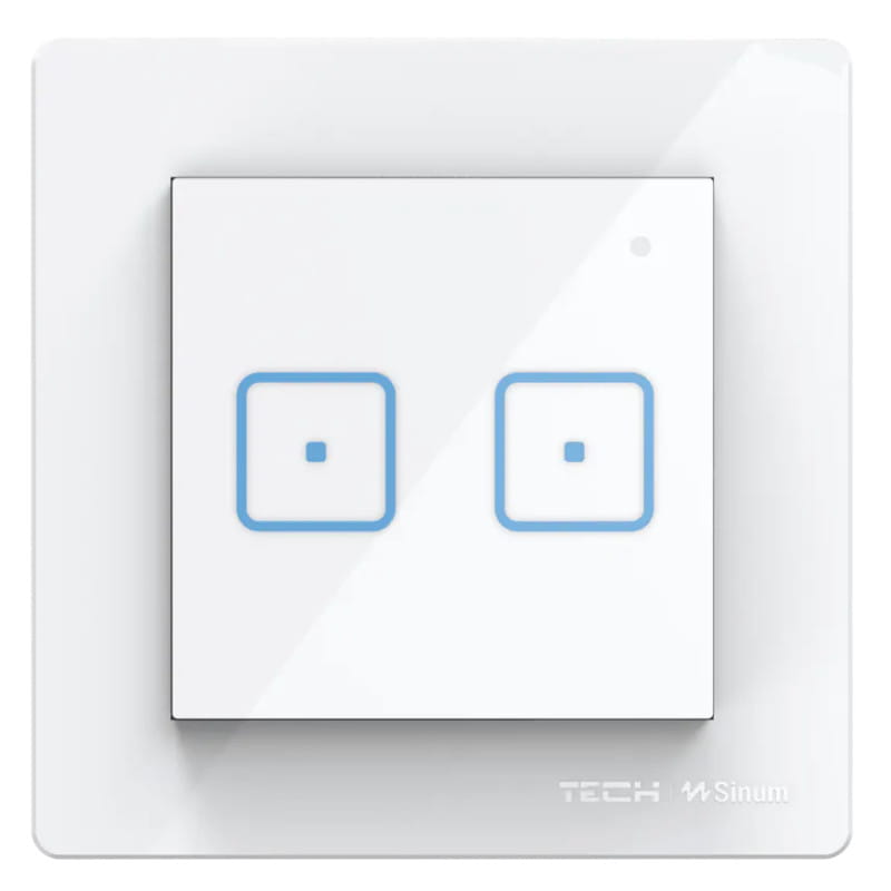 TECH SINUM DWUPOLOWY DOTYKOWY SZKLANY WŁĄCZNIK DORAMKOWY FS-02 BIAŁY (KOMUNIKACJA BEZPRZEWODOWA WTP)