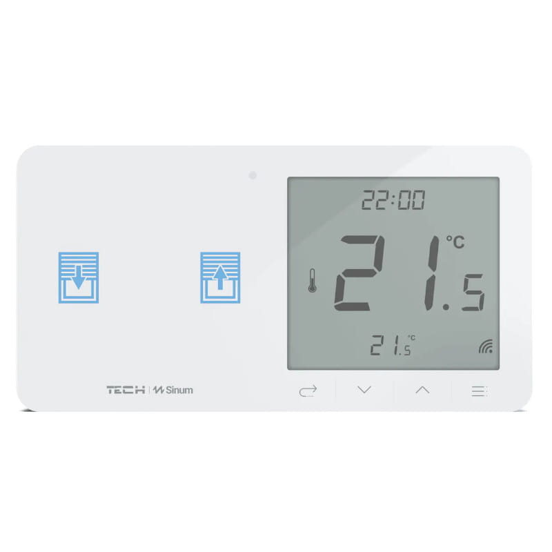 TECH SINUM DWUPOLOWY DOTYKOWY SZKLANY WŁĄCZNIK ROLET Z REGULATOREM TEMPERATURY WZR-02L BIAŁY (KOMUNIKACJA BEZPRZEWODOWA WTP, ROLETY PO LEWEJ)
