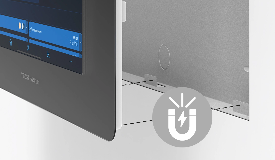 Dzięki zastosowaniu magnesów, urządzenie jest bezpiecznie utrzymywane w ramce, a jednocześnie pozostaje łatwo dostępne w razie potrzeby.
