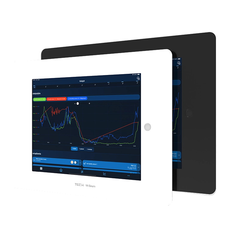 - Stałe zasilanie – dostęp do puszki podtynkowej umożliwia podpięcie tabletu na stałe (zalecany zasilacz dopuszkowy z USB – brak w zestawie).