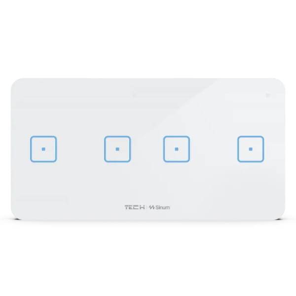 Podwójny dwupolowy włącznik dotykowy wyposażony w 4 przekaźniki i 4 pola sensorowe, umożliwia sterowanie oświetleniem lub innymi urządzeniami podłączonym do włącznika bezpośrednio z miejsca instalacji.