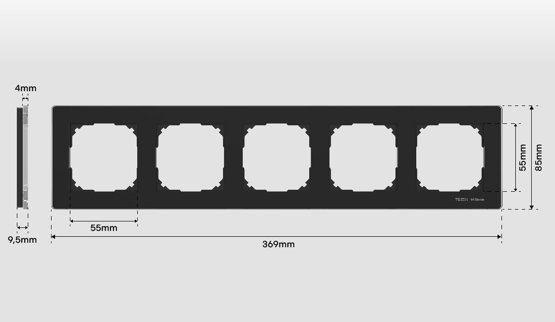 TECH SINUM SZKLANA RAMKA PIĘCIOKROTNA CZARNA 5 X 55 X 55 MM FG-05