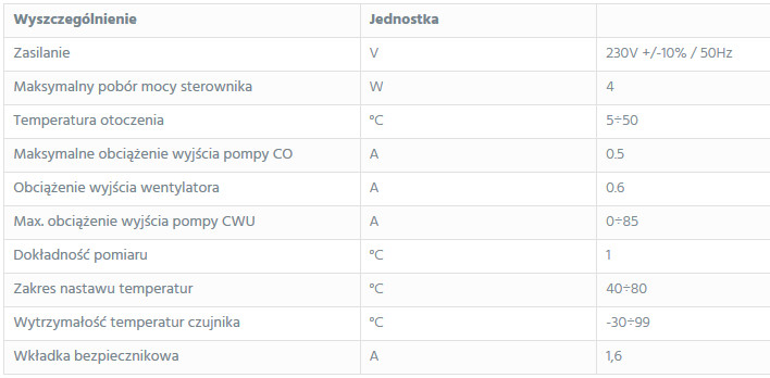 | Zakres regulacji temperatury (°C) | 40÷80 |