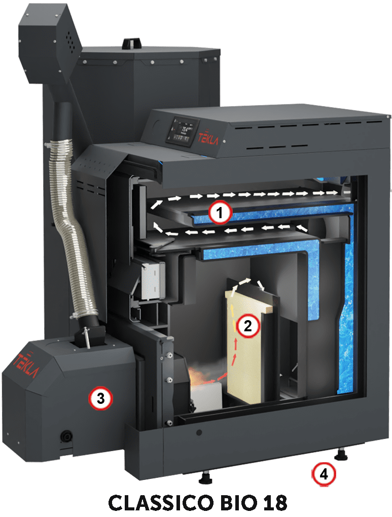 CLASSICO BIO to stalowy kocioł automatyczny wyposażony w samoczyszczący palnik pelletowy. Wymiennik kotła wykonany został z wysokiej jakości stali grubości 8 mm, a specjalnie zaprojektowana komora spalania zapewnia bardzo wysoką sprawność do 92%, co pozwala na dużą oszczędność paliwa. Kocioł spełnia wymogi 5 klasy i Ekoprojektu stawiane urządzeniom tego typu, co potwierdzone jest odpowiednimi certyfikatami. Obniżona emisja pyłów kwalifikuje kotły jako urządzenia o podwyższonym standardzie.