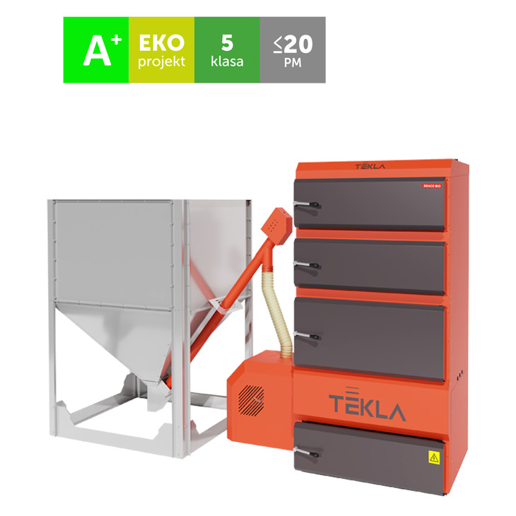 TEKLA DRACO BIO - KOCIOŁ PELLETOWY 100 KW Z ZASOBNIKIEM WOLNOSTOJĄCYM 2300 L