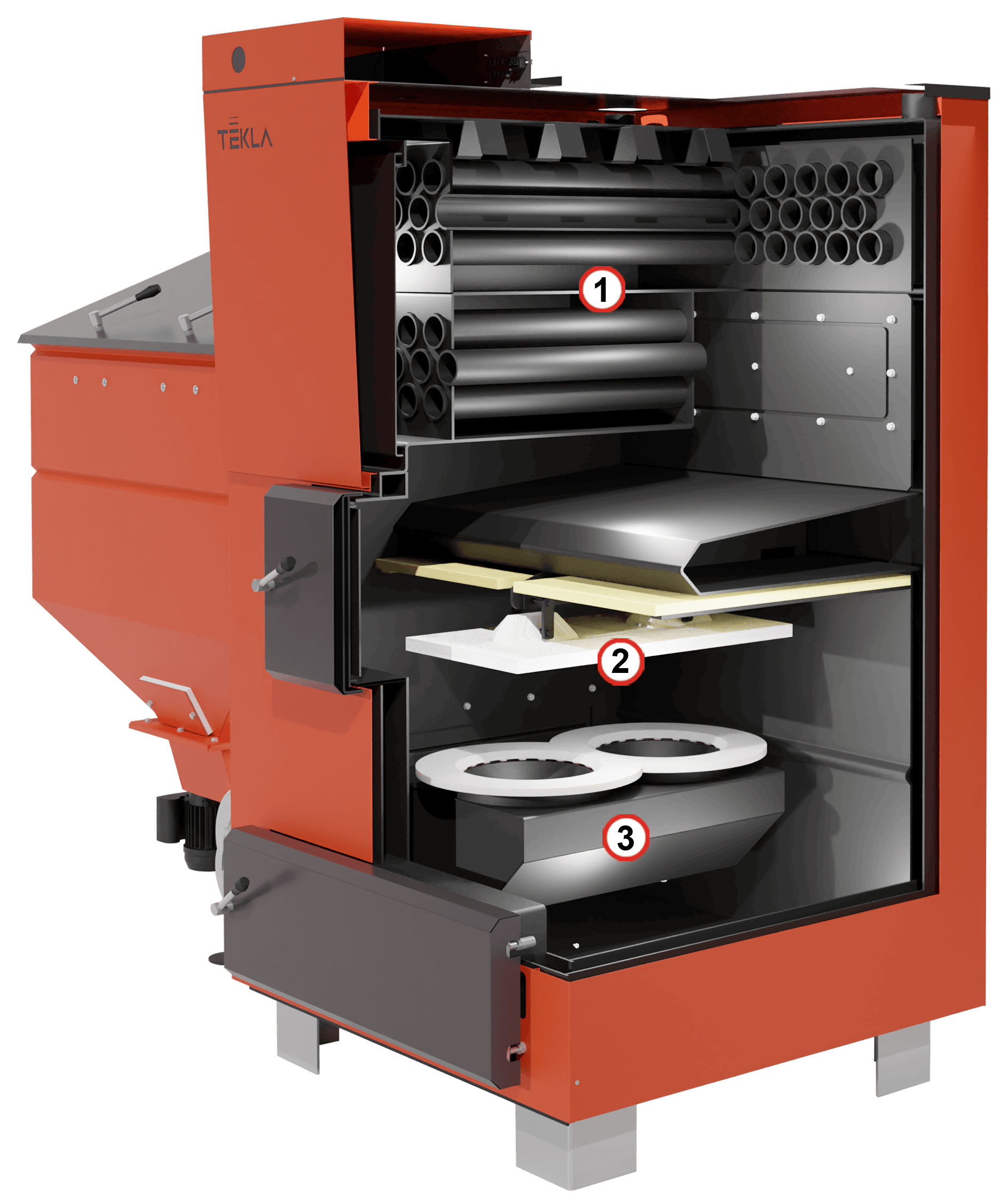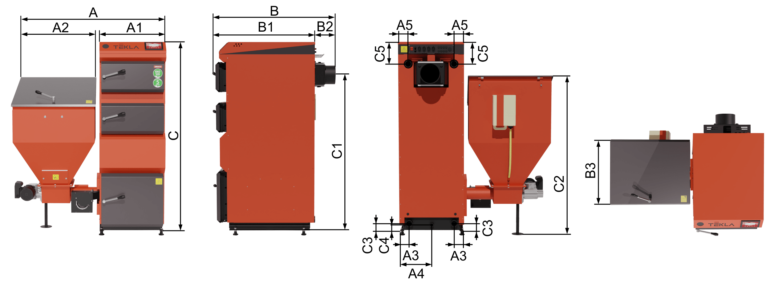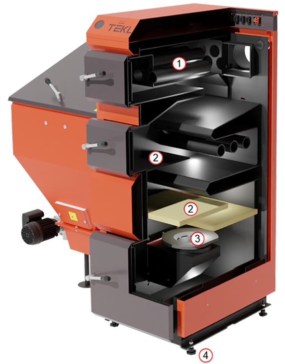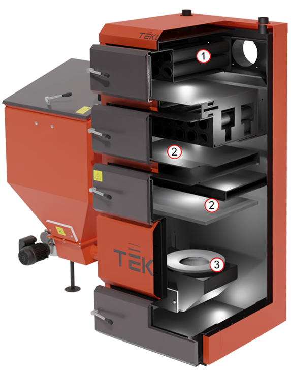 TEKLA KOCIOŁ AUTOMATYCZNY NA WĘGIEL GROSZEK DRACO 75 KW - ZASOBNIK PO PRAWEJ STRONIE