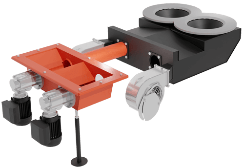 W kotłach mocy 150 kW występuje podwójny nadmuch oraz podwóje palenisko