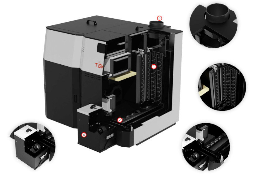 - automatyczne czyszczenie wymiennika i odpopielanie