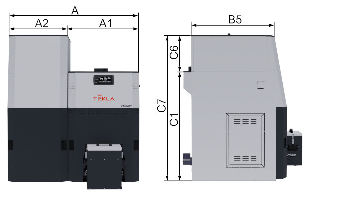 TEKLA KOMFORT KOCIOŁ PELLETOWY 5 KLASY Z AUTOMATYCZNYM ODPOPIELANIEM I CZYSZCZENIEM WYMIENNIKA 23 KW - ZASOBNIK PO PRAWEJ STRONIE