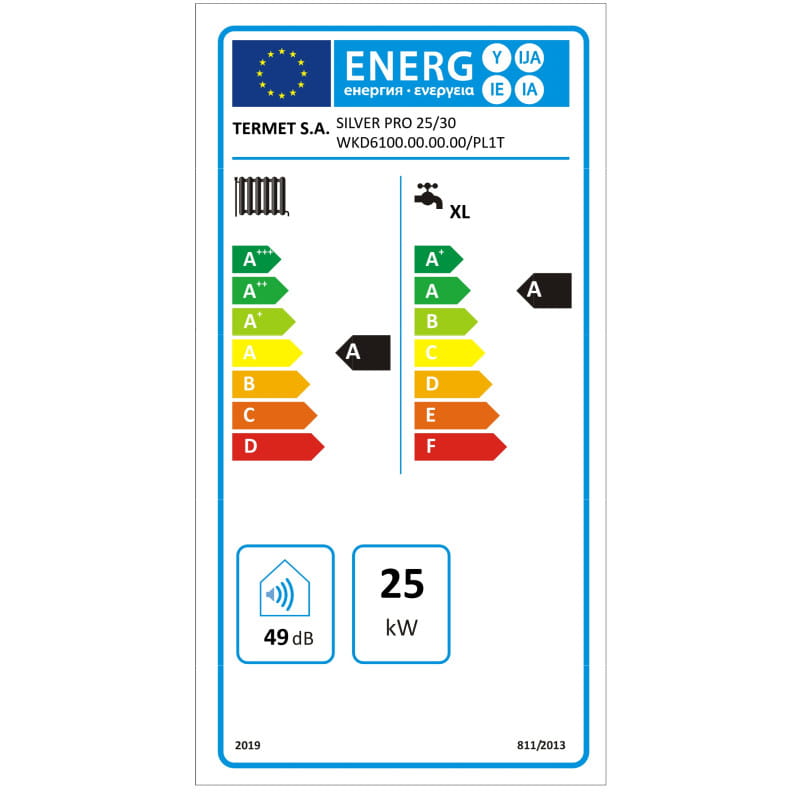 | Klasa sezonowej efektywności energetycznej ogrzewania pomieszczeń | A |