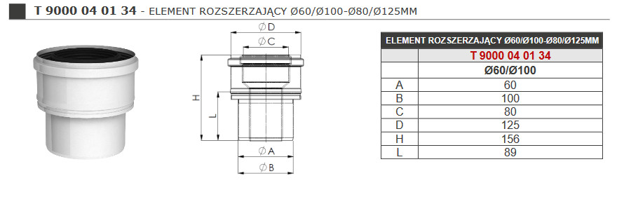 TERMET ELEMENT ROZSZERZAJĄCY PP/STAL Z Ø60/Ø100 MM NA Ø80/125 MM T 9000 04 01 34