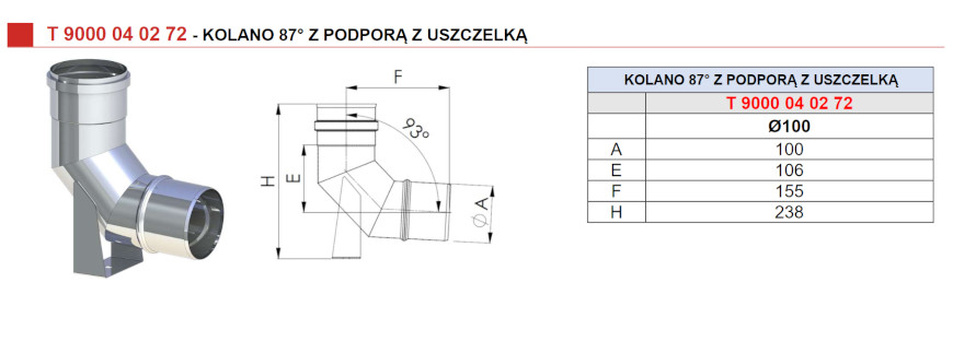 TERMET KOLANO STALOWE Ø 100 87° Z PODPORĄ I USZCZELKĄ T 9000 04 02 72