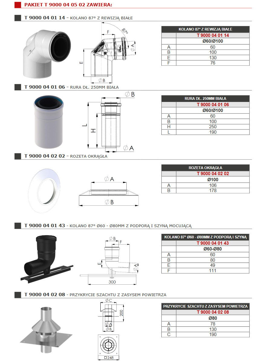 TERMET PAKIET ROZSZERZAJĄCY DO SZACHTU PP/STAL Z Ø60/Ø100 MM NA Ø80 MM T 9000 04 05 02