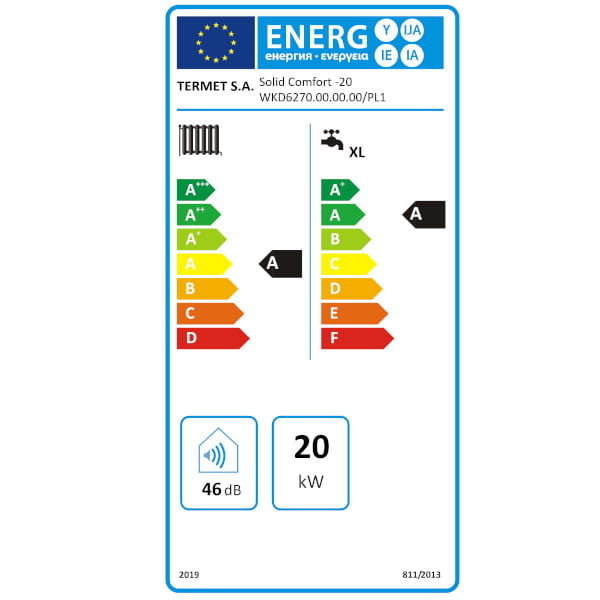 | Klasa sezonowej efektywności energetycznej ogrzewania pomieszczeń | A |