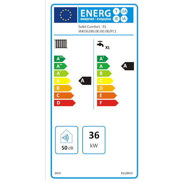 | Klasa sezonowej efektywności energetycznej ogrzewania pomieszczeń | A |