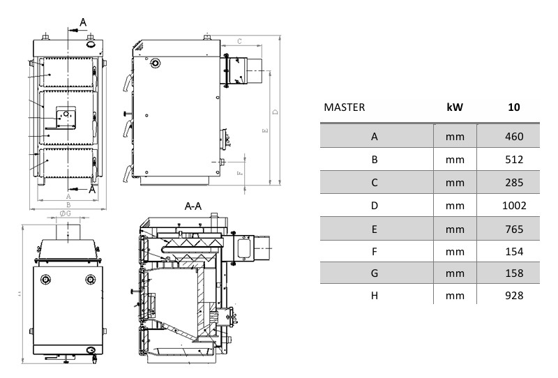 Kocioł MASTER przeznaczony jest do wodnych instalacji centralnego ogrzewania systemu otwartego, z grawitacyjnym jak i wymuszonym obiegiem wody, posiadających zabezpieczenia zgodnie z wymaganiami PN-91/B-02413 dotyczących zabezpieczeń wodnych układu otwartego. Kocioł można też montować w układzie zamkniętym pod warunkiem montażu zabezpieczenia w postaci zaworu bezpieczeństwa, zaworu schładzającego połączonego do sieci wodociągowej poprzez zawór termostatyczny oraz montażu naczynia wzbiorczego przeponowego. Instalacja w układzie zamkniętym musi być zabezpieczona zgodnie z wymaganiami norm PN-EN-12828 i PN-EN 303-5.