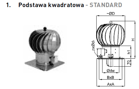 TURBOWENT HYBRYDOWY PODSTAWA KWADRATOWA TURBINA I PODSTAWA BL. CHROMONIKLOWA FI 200