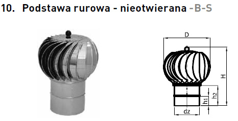 TURBOWENT PODSTAWA RUROWA NIEOTWIERANA TURBINA ALUMINIOWA DOLOT BL. OCYNKOWANA FI 400