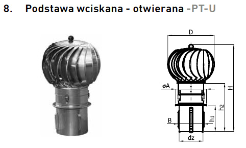 TURBOWENT PODSTAWA WCISKANA OTWIERANA TURBINA ALUMINIOWA DOLOT BL. CHROMONIKLOWA FI 300
