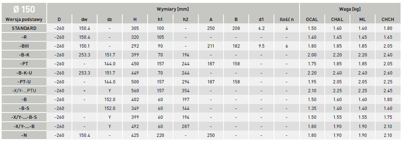 | Średnica wewnętrzna (mm) | 150 |
