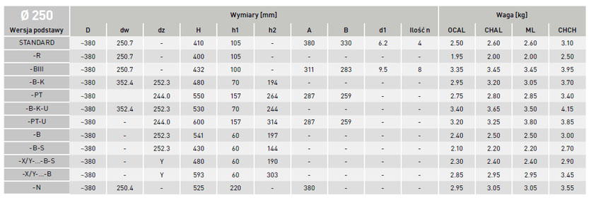 | Średnica wewnętrzna (mm) | 250 |