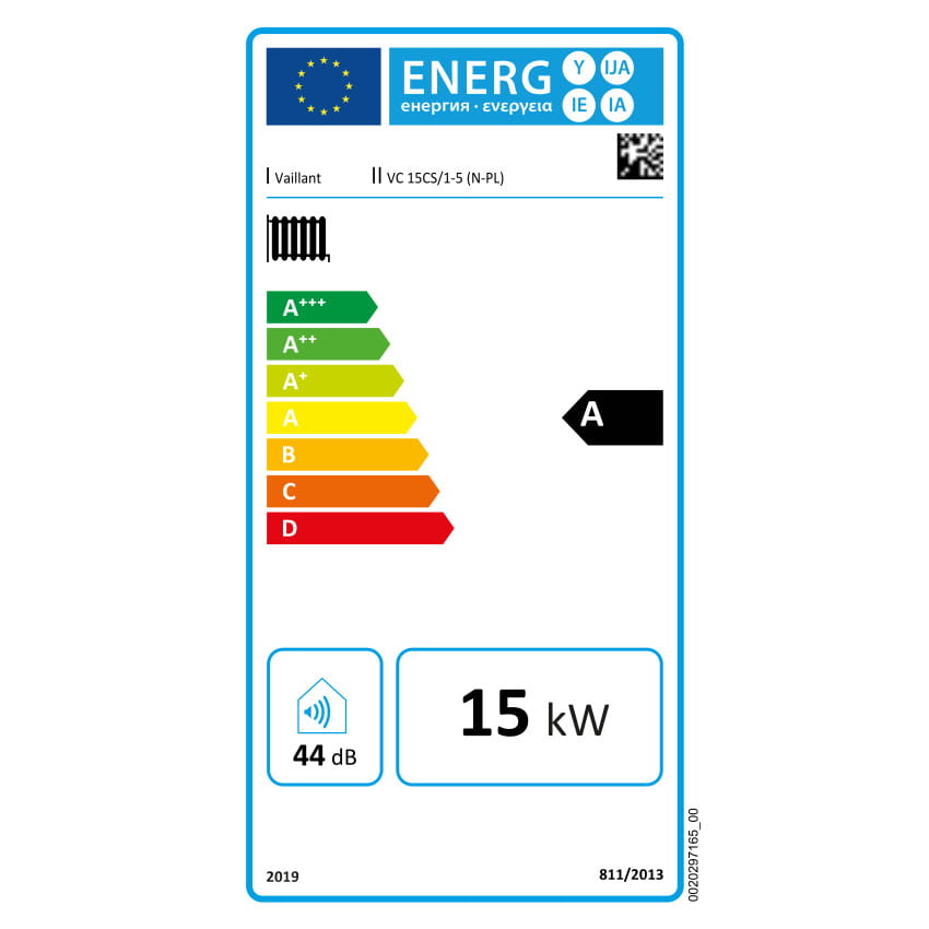 | Klasa energetyczna c.o. w połączeniu z regulatorem klasy VI np. sensoCOMFORT (A+++ do D) | A | A+ | A+ | A+ | A+ | A+ |