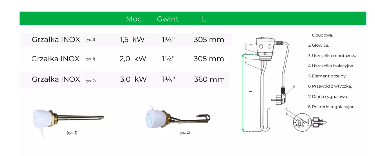 VASTI KOMPLET ELEKTRYCZNY INOX 3KW VSS-ZN00-GRZ5/4"-3KW
