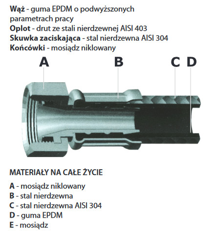 VERO TERA 1" (DN25) - przyłącze elastyczne w oplocie ze stali nierdzewnej.