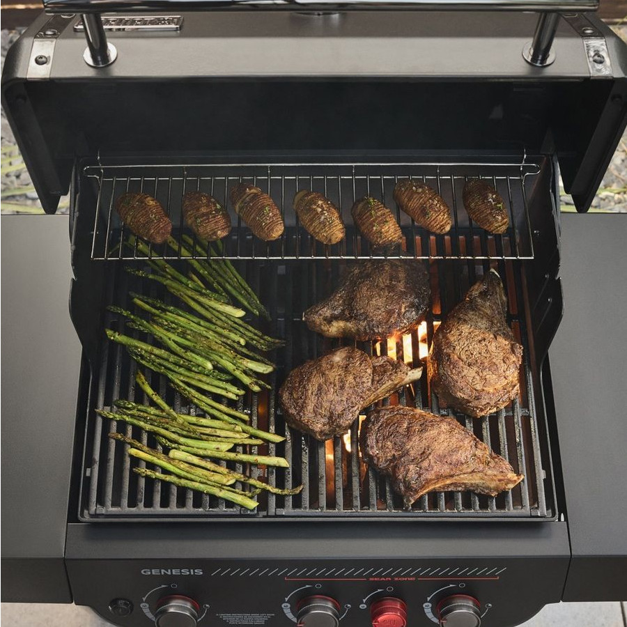 Weber Genesis E-330WR to wyższej klasy grill gazowy z serii Genesis w eleganckiej wersji Stealth Edition, łączący dużą moc, nowoczesne rozwiązania i solidną konstrukcję. Model ten został zaprojektowany zarówno dla miłośników klasycznego grillowania, jak i bardziej zaawansowanych użytkowników, oferując duże pole grillowania, intensywne strefy ciepła oraz praktyczne funkcje zwiększające wygodę przygotowywania potraw. Ten grill wyróżnia się m.in. ekstra dużą strefą Sear Zone z palnikiem do intensywnego przypiekania, ergonomicznymi stolikami bocznymi z systemem Weber WORKS, zamykaną szafką na butlę LPG i dodatkowym miejscem do przechowywania akcesoriów. Dzięki temu jest to rozwiązanie idealne zarówno na rodzinne grillowanie, jak i większe imprezy w ogrodzie.