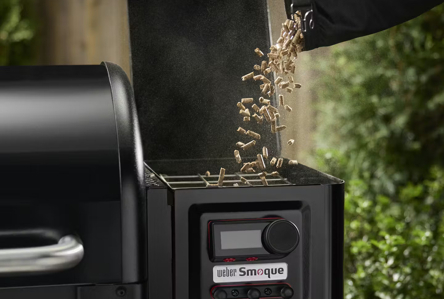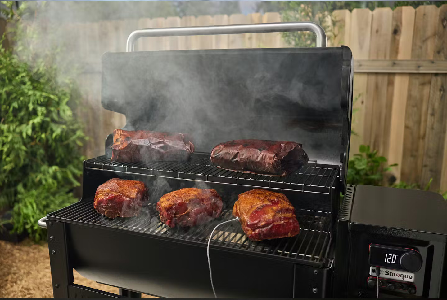 Odkryj radość i aromat wędzenia za pomocą wędzarki na pellet Weber Smoque. Uzyskaj wzmocnienie aromatu wędzenia za pomocą ustawienia SmokeBoost, które zapewnia utrzymanie idealnej temperatury pod kątem optymalnego pochłaniania dymu przez potrawę, a także w oparciu o system SmoqueVent, który zapewnia cyrkulację dymu wokół potraw, wzmacniając aromat i powodując apetyczne zarumienienie. Od przyrządzania w niskiej temperaturze, po wypiekanie i pieczenie – z różnymi temperaturami przygotowywania wędzonych żeberek, mostków i suszonego mięsa, a także pieczonego kurczaka, wypieków i przystawek. Przyrządzaj wiele potraw jednocześnie, aby nakarmić wiele osób, dzięki powierzchni ponad 3800 centymetrów kwadratowych. Szybciej rozpoczynaj wędzenie dzięki regulatorowi temperatury PID Rapid React, który zapewnia rozgrzanie wędzarki w czasie do 15 minut† oraz szybkie odzyskanie ciepła po otwarciu pokrywy. Grilluj bez obaw dzięki intuicyjnemu w obsłudze sterownikowi cyfrowemu, który wskazuje temperaturę grilla i potrawy oraz łączy się z aplikacją Weber Connect® na smartfonie, co pozwala sterować pracą wędzarki z dowolnego miejsca, a także monitorować postępy grillowania w czasie rzeczywistym oraz wczytywać przepisy, instrukcje krok po kroku, alerty o zakończeniu przyrządzania i inne informacje gwarantujące uzyskanie doskonałych rezultatów za każdym razem.
